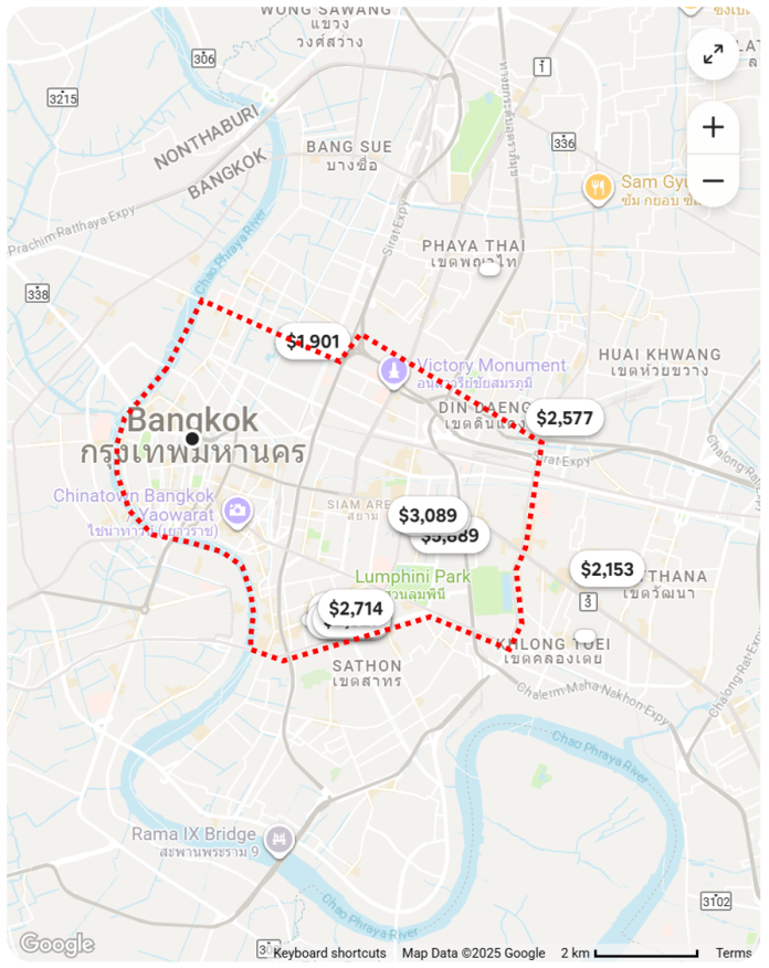 We recommend booking within the following area, since traffic can be an issue with Bangkok and the marked area is close to the clinic.