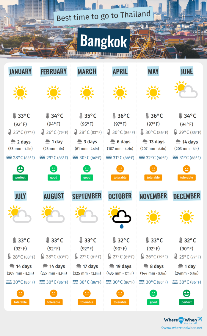 Thailand experiences a lot seasonal variation and tourist trends largely follow this, with peak-season being more expensive, and off-season being more affordable. While the weather does lead to sizable differences in tourist volumes, the impact of these weather differences are often wildly overstated. Even during rainy season, downpours often happen predictably, later in the day, and while heavy are not particularly long-lived.
